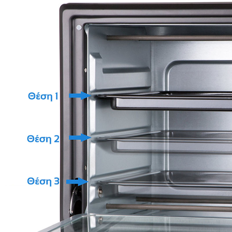 - 3 διαφορετικά ύψη για να βάλετε το ταψάκι ή τη σχάρα