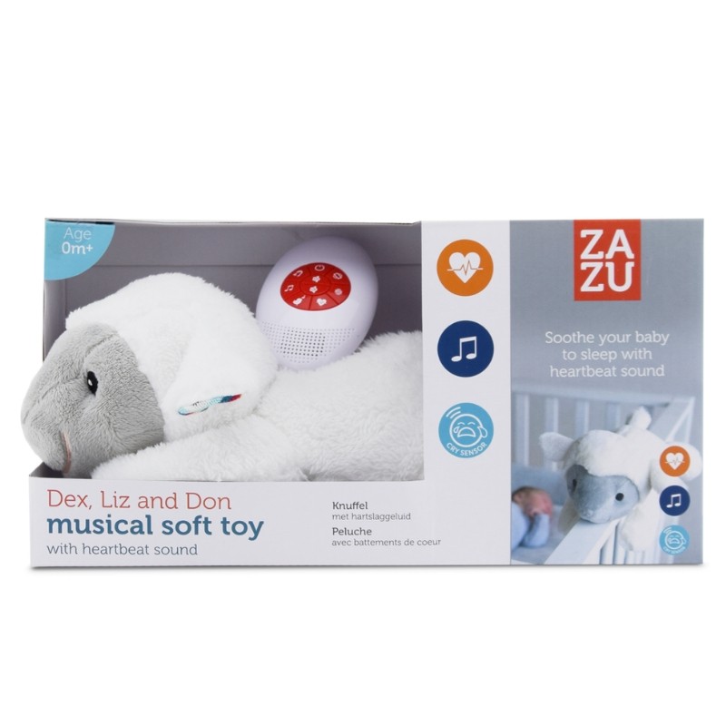 Τα ζωάκια της ZAZU ο DEX σκυλάκι, COCO κοάλα, LIZ αρνάκι, BIBI κουνελάκι & DON γαιδαράκος αναπαράγουν λευκούς ήχους και μελωδίες. Περιλαμβάνουν στη συσκευή τους, 6 διαφορετικούς ήχους μεταξύ των οποίων είναι ο χτύπος της καρδιάς της μητέρας, τρεχούμενα νερά απο καταρράκτη, θρόισμα στη φύση με πουλάκια, ήχοι της φύσης και άλλες μελωδίες νανουρίσματα.
