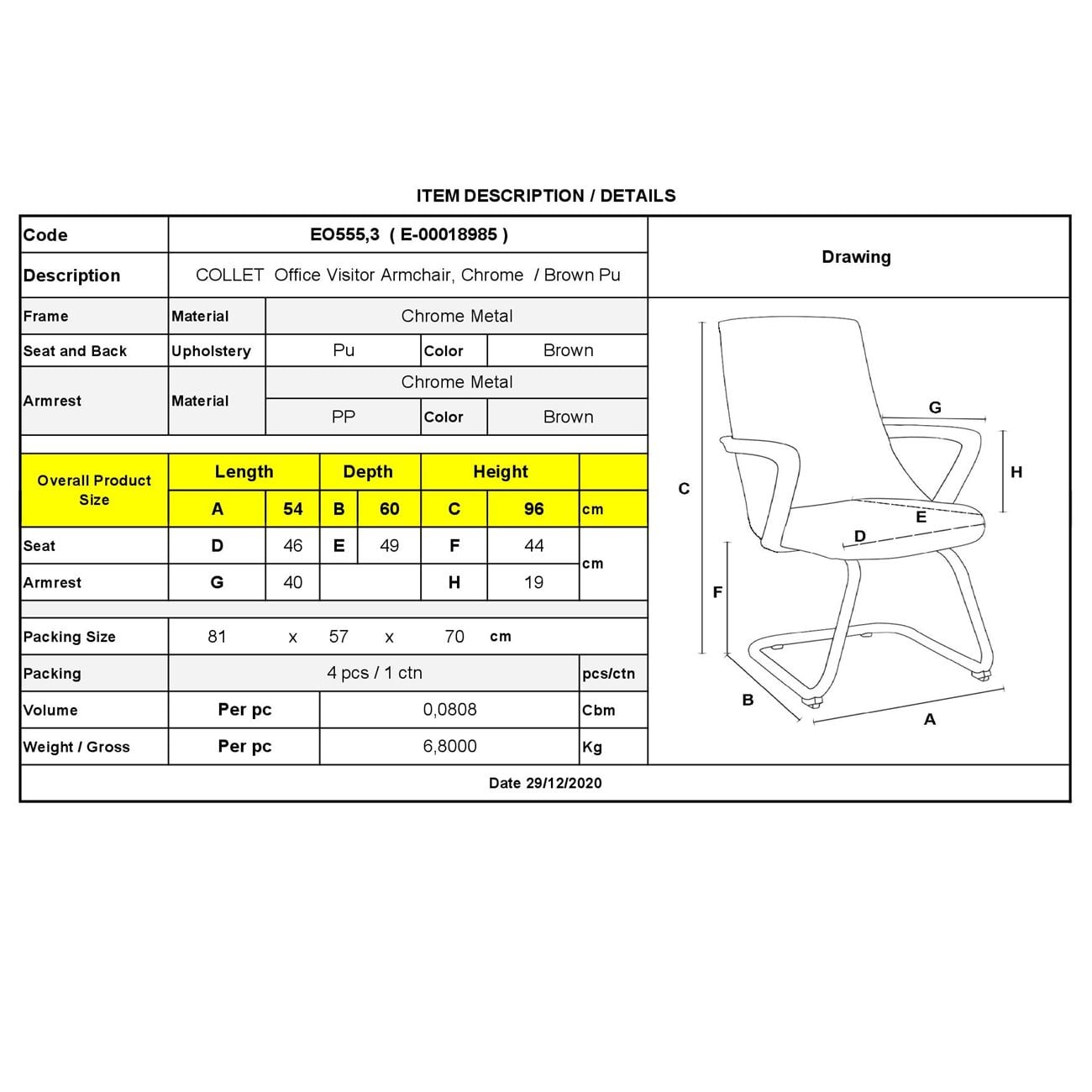 Woodwell COLLET Πολυθρόνα Γραφείου Επισκέπτη Μέταλλο Χρώμιο, Pu Καφέ Ε-00018985 ΕΟ555,3
