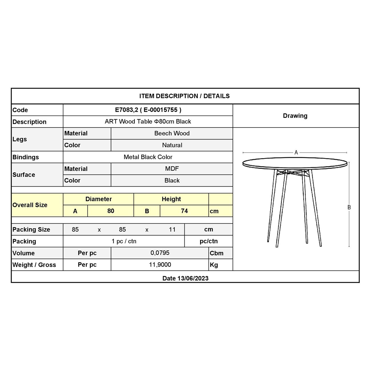 Ε7083,2 - ART Wood Τραπέζι Φ80cm Μαύρο