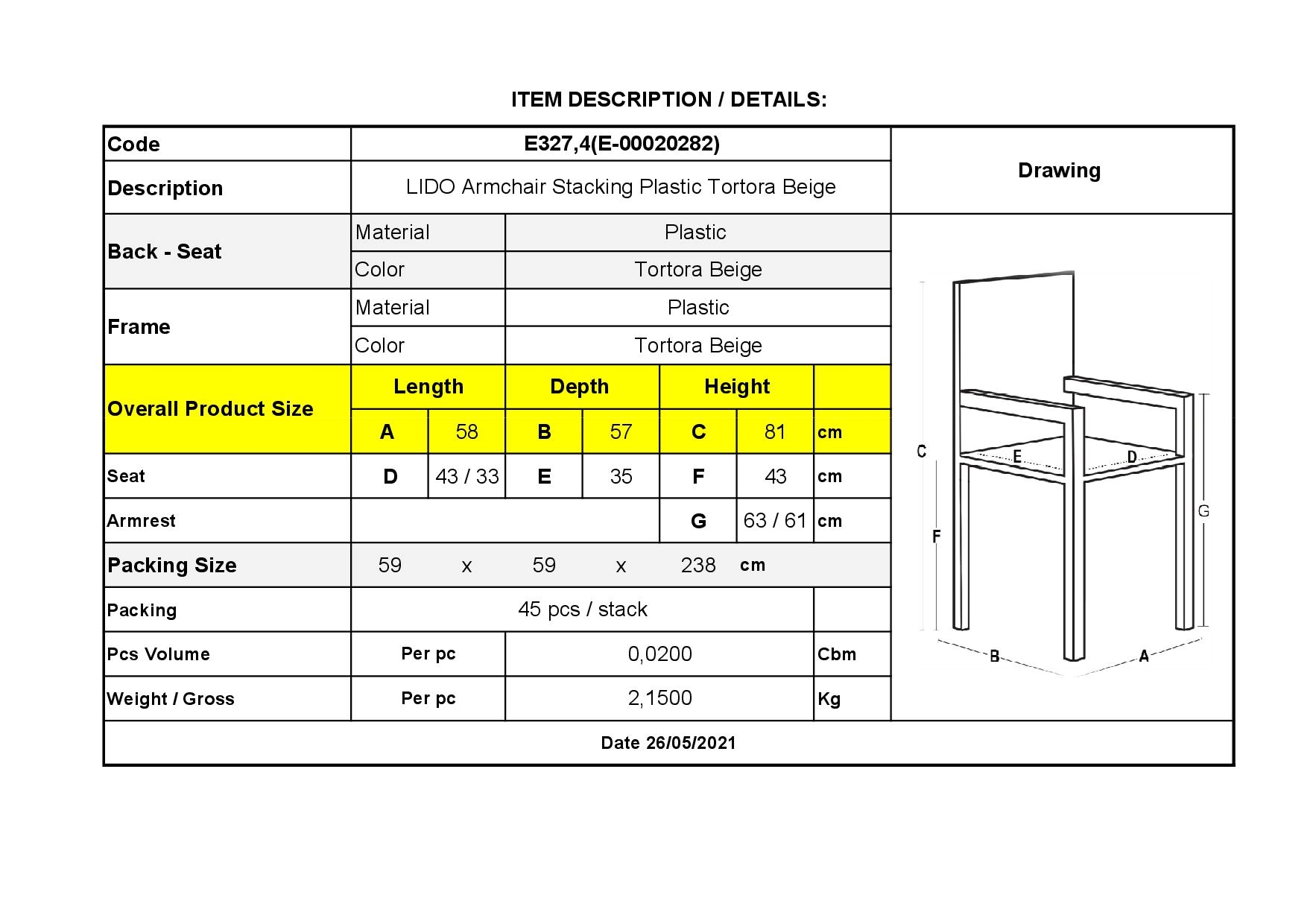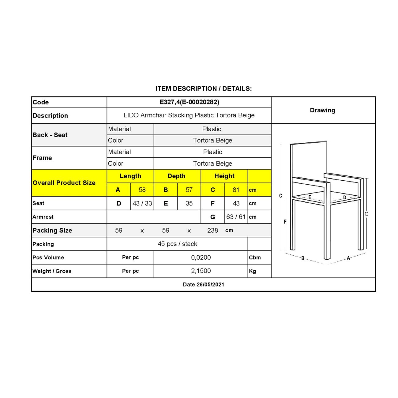 Ε327,4 - LIDO Πολυθρόνα PP Tortora, Στοιβαζόμενη
