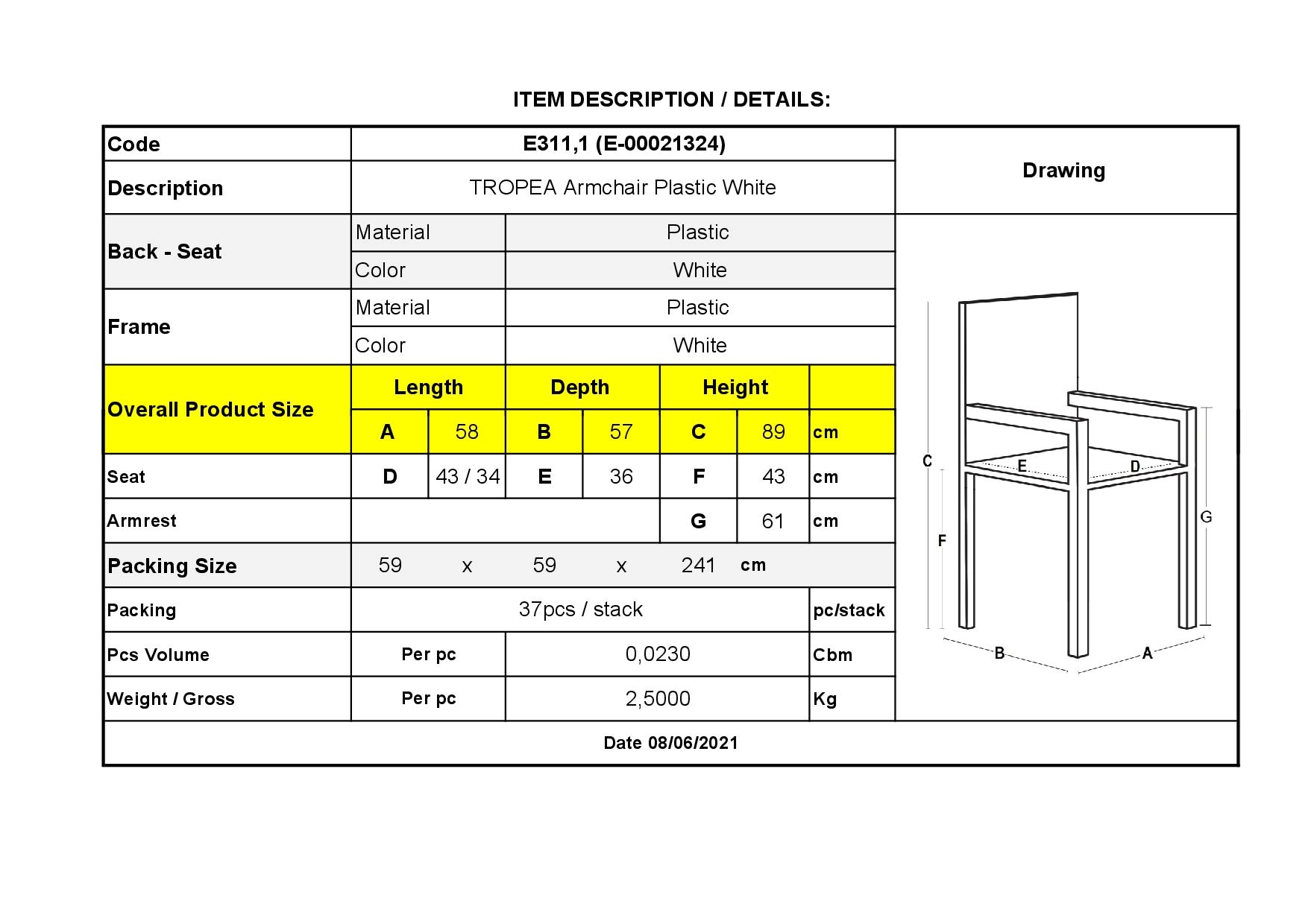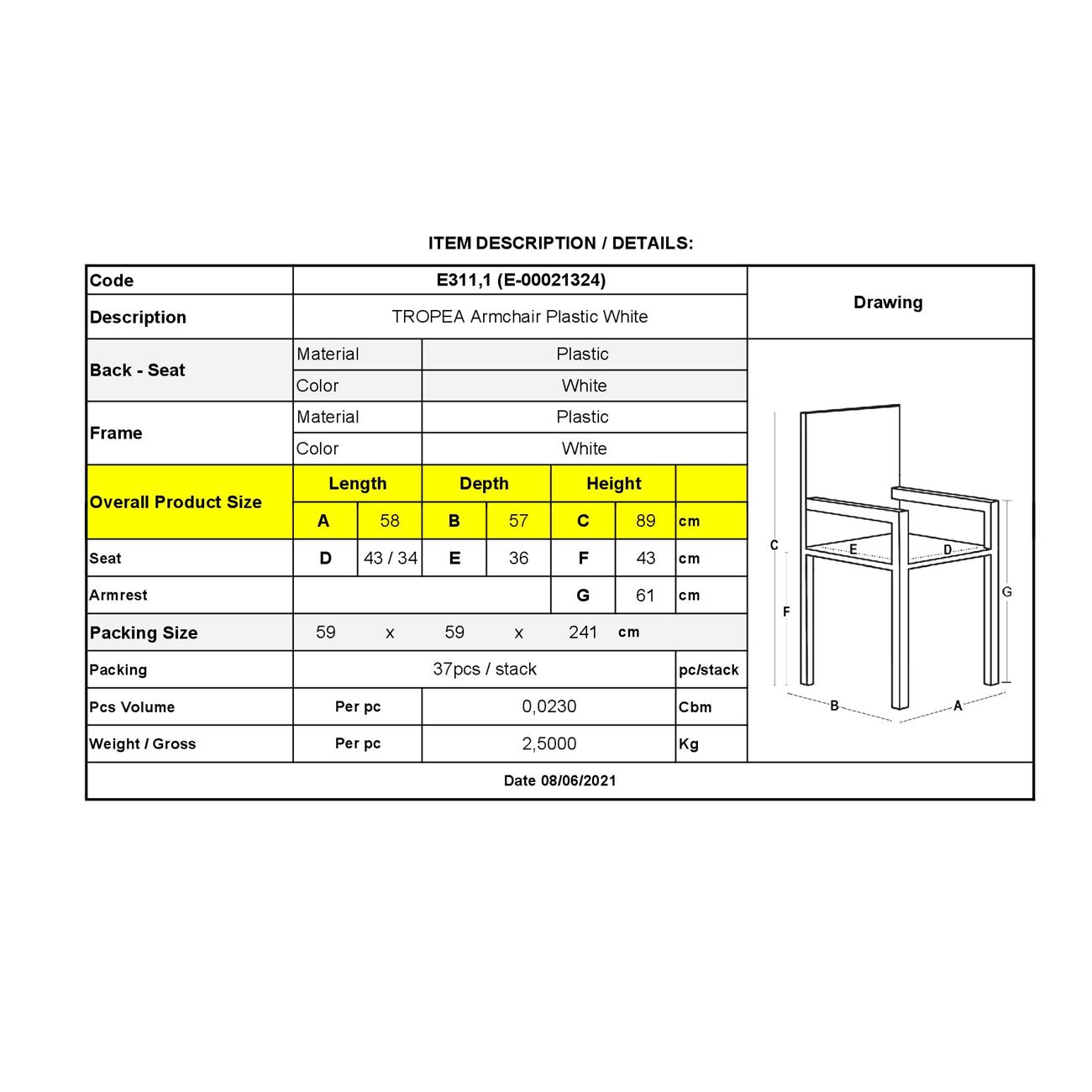 Woodwell TROPEA Πολυθρόνα Τραπεζαρίας Κήπου - Βεράντας Στοιβαζόμενη, PP Απόχρωση Άσπρο Ε-00021324 Ε311,1
