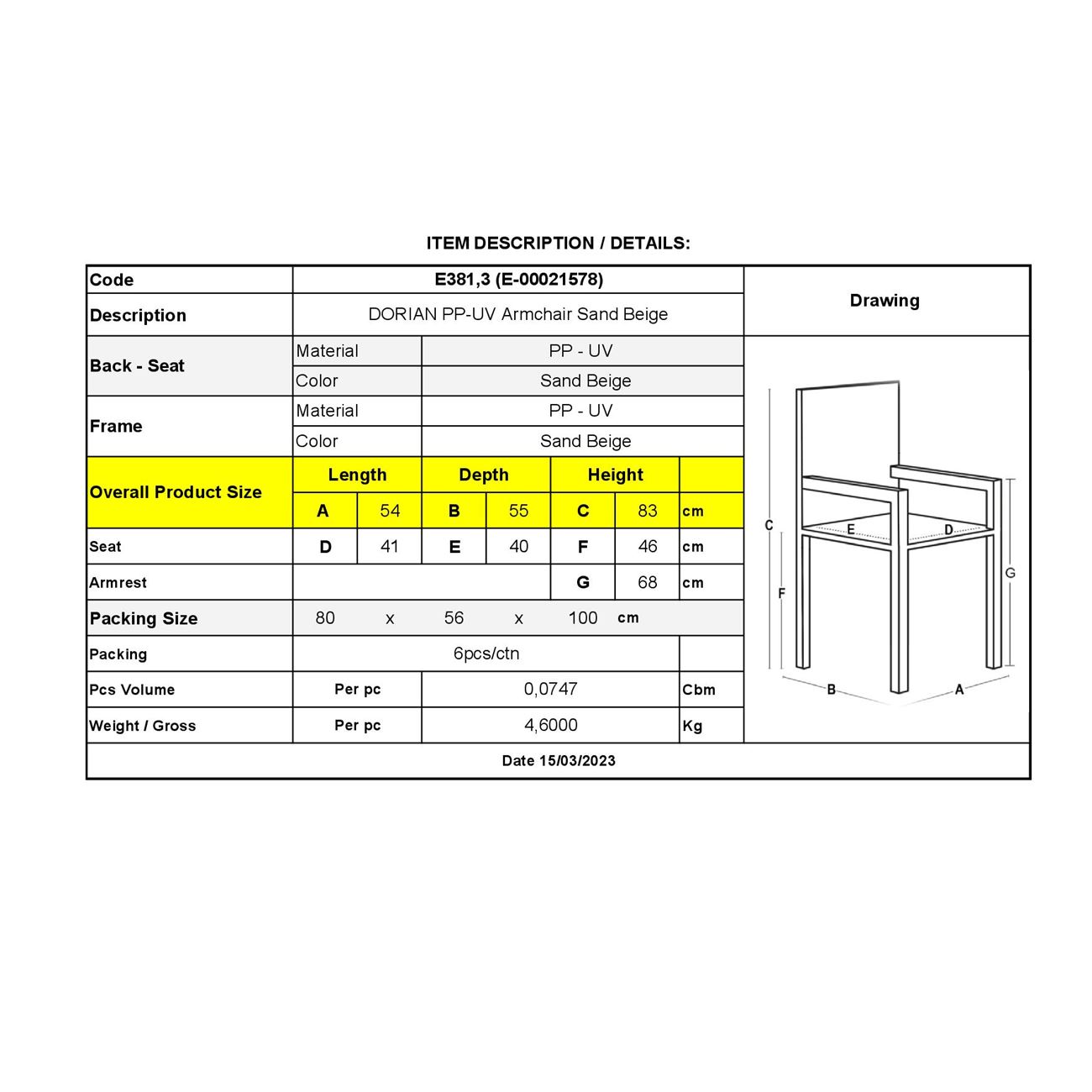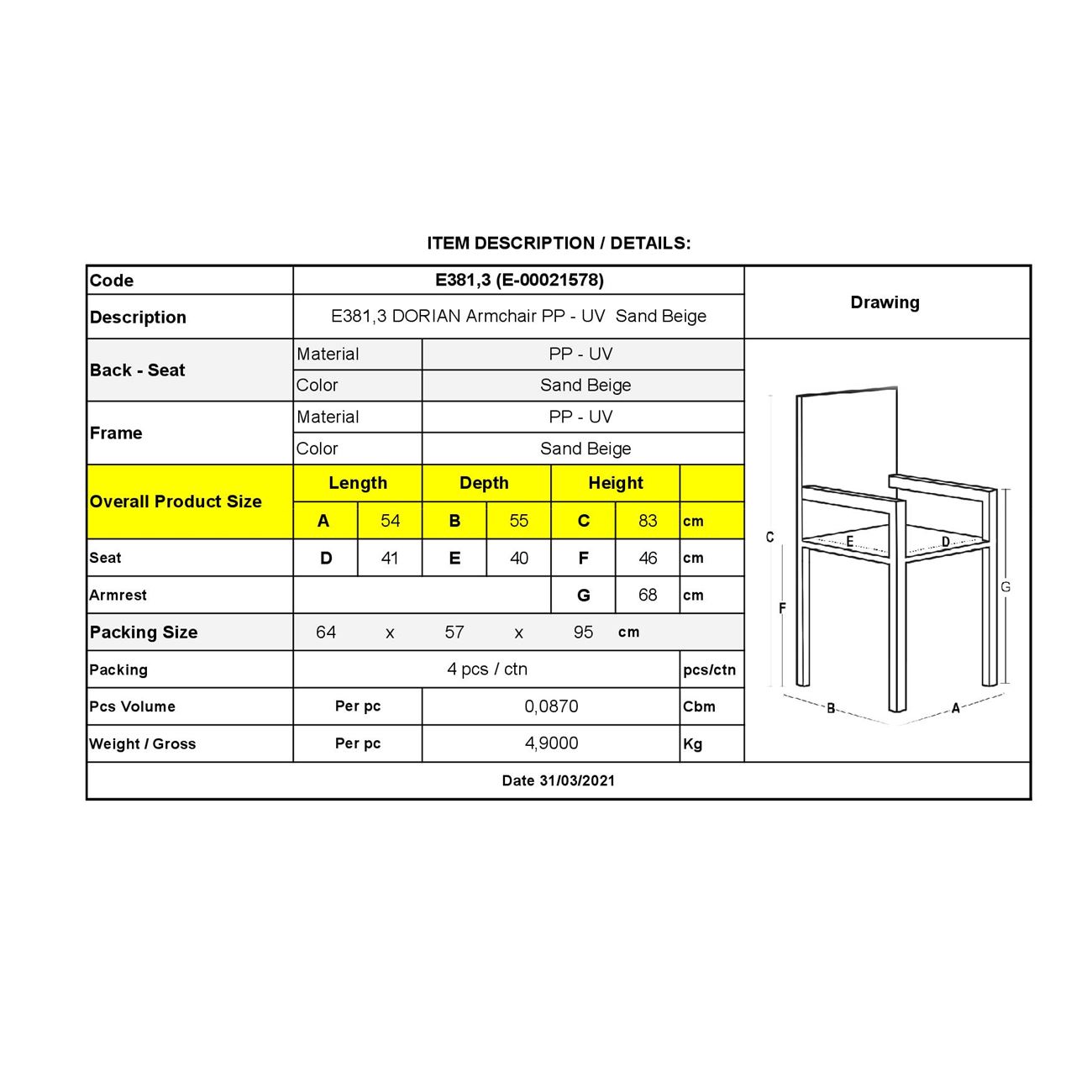 Ε381,3 DORIAN Πολυθρόνα PP-UV Sand Beige