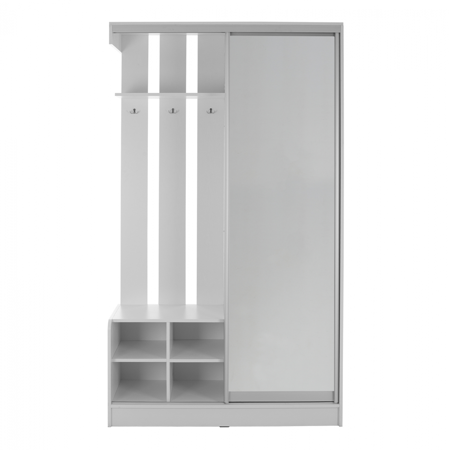 Μία σύνθεση επίπλου που συνδυάζει στη δεξιά πλευρά συρόμενη ντουλάπα με μεγάλο καθρέπτη εξωτερικά, ενώ εσωτερικά διαθέτει 1 ράφι στο επάνω μέρος και μια κάθετη συρόμενη προς τα έξω ράβδο κρέμασης, που διευκολύνει το κρέμασμα των ρούχων.