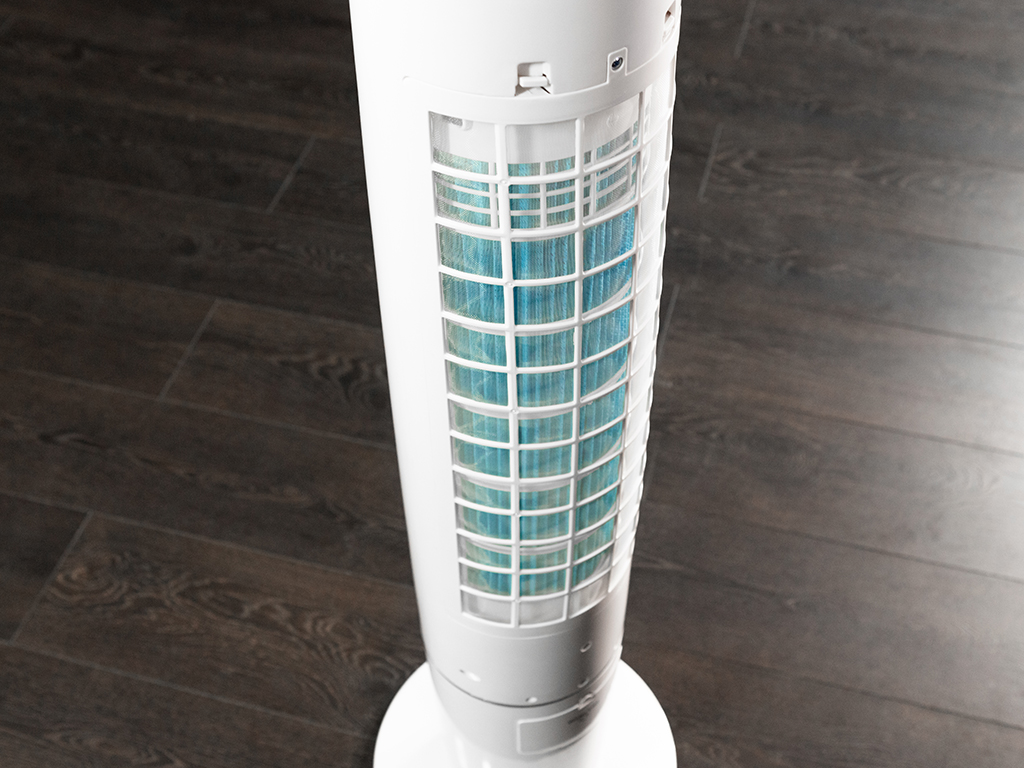 Tο μηχάνημα έρχεται με περιστρεφόμενη βάση για βελτιωμένη διάχυση αέρα, ενώ ένα από τα πλεονεκτήματά του είναι και ο ενσωματωμένος ιονιστής: