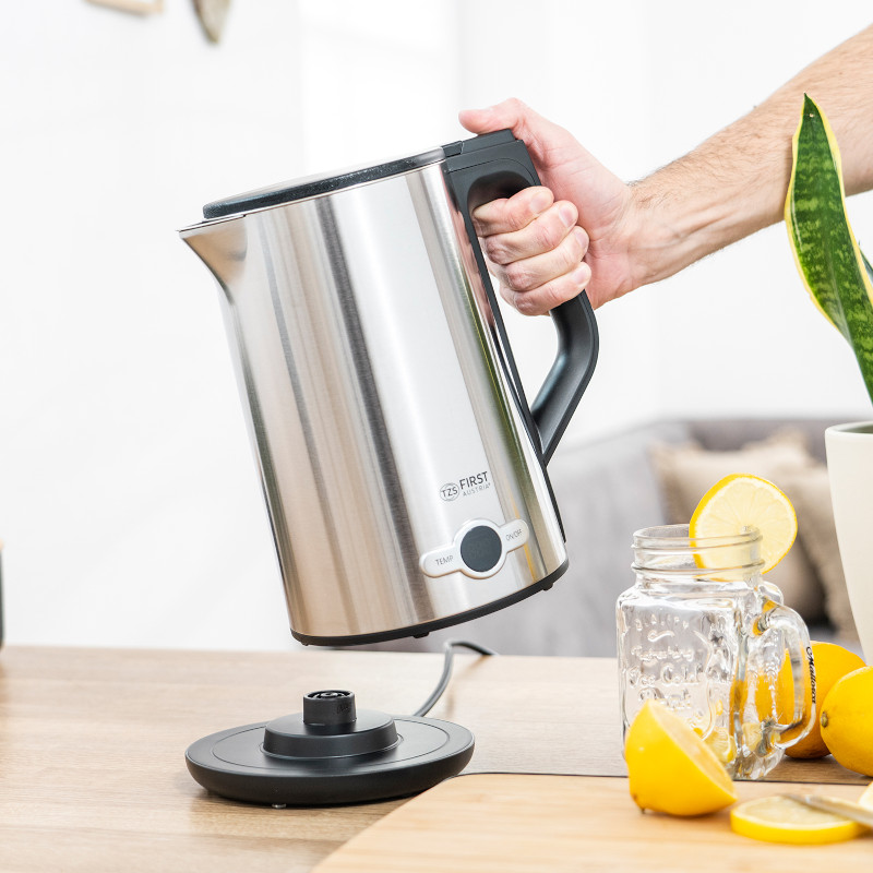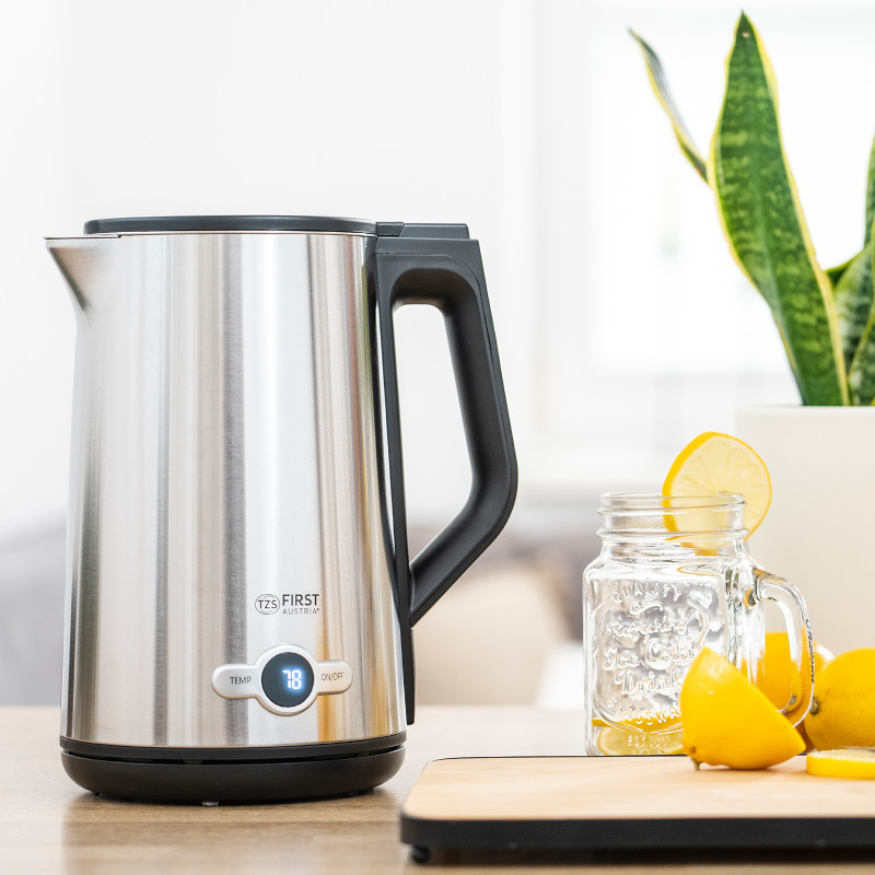 Inox βραστήρας 1.7 λίτρων με έλεγχο της θερμοκρασίας. Μπορείτε να επιλέξετε την ακριβή θερμοκρασία που θέλετε να ζεστάνετε το νερό με το πάτημα ενός κουμπιού. Είναι εξαιρετικά απλός στη χρήση. Η κανάτα από ανοξείδωτο ατσάλι κάνουν το βραστήρα πιο υγιεινό και ανθεκτικό στη χρήση από τους πλαστικούς και δεν περιέχει χημικά BPA.