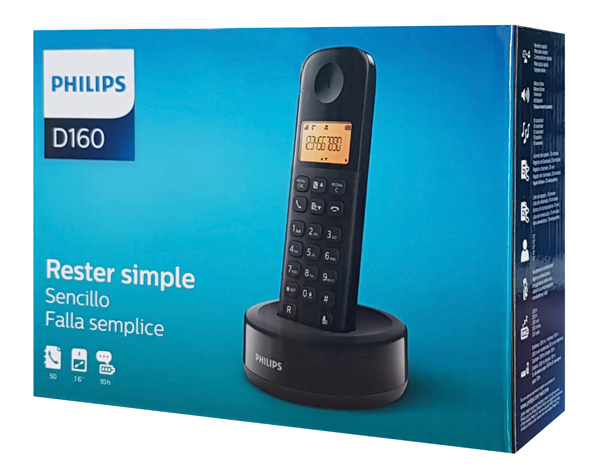 Το ασύρματο τηλέφωνο D160 της Philips συνδυάζει τις έξυπνες και βασικές λειτουργίες με τη φρέσκια και ελκυστική του σχεδίαση. Με την εξαιρετική αναπαραγωγή ήχου, τις έξυπνες λειτουργίες και τη λειτουργία plug & play, θα απολαμβάνετε κάθε συνομιλία με εξαιρετική ευκρίνεια και άνεση.