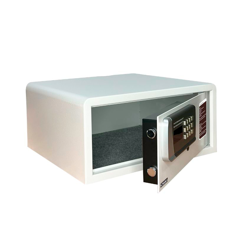 Χρηματοκιβώτιο διαστάσεων 43 x 38 x 20 cm με ηλεκτρονική κλειδαριά. Τοποθετείται στον τοίχο και διαθέτει 2 κλειδιά ασφαλείας και πάχος τοιχωμάτων 2 mm. Ειδικά σχεδιασμένο για ξενοδοχεία, ενοικιαζόμενα δωμάτια και σπίτια Airbnb. Το μέγεθός του είναι ιδανικό για αποθήκευση laptop ή εγγράφων χωρίς να τσαλακωθούν. Διαθέτει χαλάκι για προστασία των περιεχομένων.