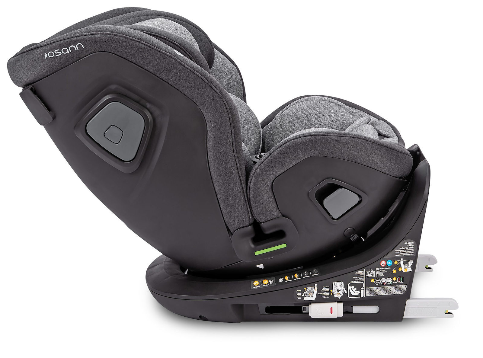 - Το κάθισμα αυτοκινήτου περιστρέφεται προς τα πλάγια και ασφαλίζει στη θέση του, επιτρέποντας στους γονείς να τοποθετήσουν το παιδί τους μέσα και έξω από το κάθισμα του αυτοκινήτου με ευκολία όταν κοιτάζει προς τα πίσω.