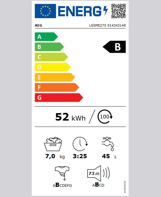 Μέγιστη χωρητικότητα σε kg στον κύκλο πλύσης (ΕΕ 2017/1369): 7