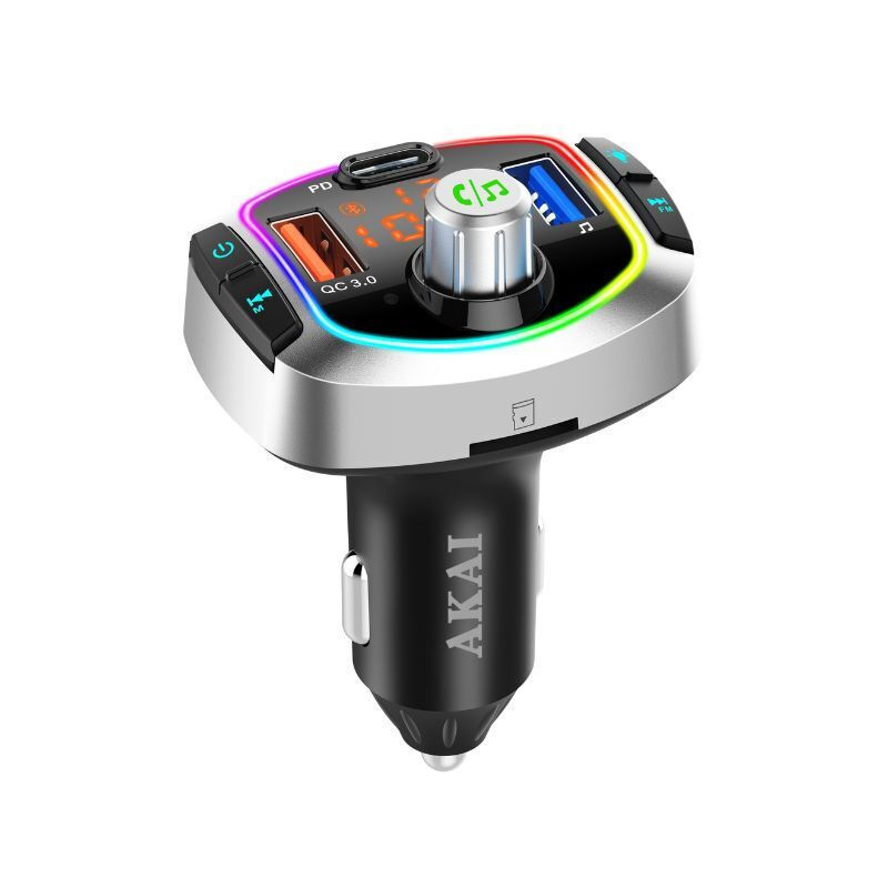 Το FM transmitter FMT-63BT της Αkai θα σας επιτρέψει να απολαύσετε την αγαπημένη σας μουσική σε οποιοδήποτε στερεοφωνικό αυτοκινήτου που διαθέτει ραδιόφωνο. Τα πολύχρωμα φώτα LED θα κάνουν το εσωτερικό του πιο φωτεινό και όμορφο, ενώ χάρη στην ψηφιακή οθόνη LED πολλαπλών ενδείξεων, η χρήση του θα γίνει ακόμη πιο εύκολη. Τα υποστηριζόμενα αρχεία ήχου διασφαλίζουν την ανάγνωση τραγουδιών από κάρτα MicroSD, ενώ μπορείτε να αναπαράγετε τραγούδια και από USB Stick ή μέσω Bluetooth απευθείας από το smartphone, ώστε να τα ακούτε όλα δυνατά στα ηχεία του στερεοφωνικού σας! Eπιπλέον, διαθέτει δύο θύρες USB για ταυτόχρονη γρήγορη φόρτιση δύο συσκευών και αναπαραγωγή μουσικής, μία USB QC3.0 και μία USB Type-C με μέγιστη ισχύ 20W. Συντονίζεται στο πλήρες φάσμα συχνοτήτων με ψηφιακή ρύθμιση (Digital PLL): FM 87.5MHz - 108.0MHz, προκειμένου να επιλέξετε εύκολα την πιο «καθαρή» συχνότητα. Με το ενσωματωμένο μικρόφωνο μπορείτε να πραγματοποιήσετε κλήσεις handsfree ακούγοντας καθαρά και δυνατά τον συνομιλητή σας από τα ηχεία του αυτοκινήτου. Πρόκειται για μία μικρή συσκευή αυτοκινήτου με αμέτρητες δυνατότητες, τελευταίας τεχνολογίας!